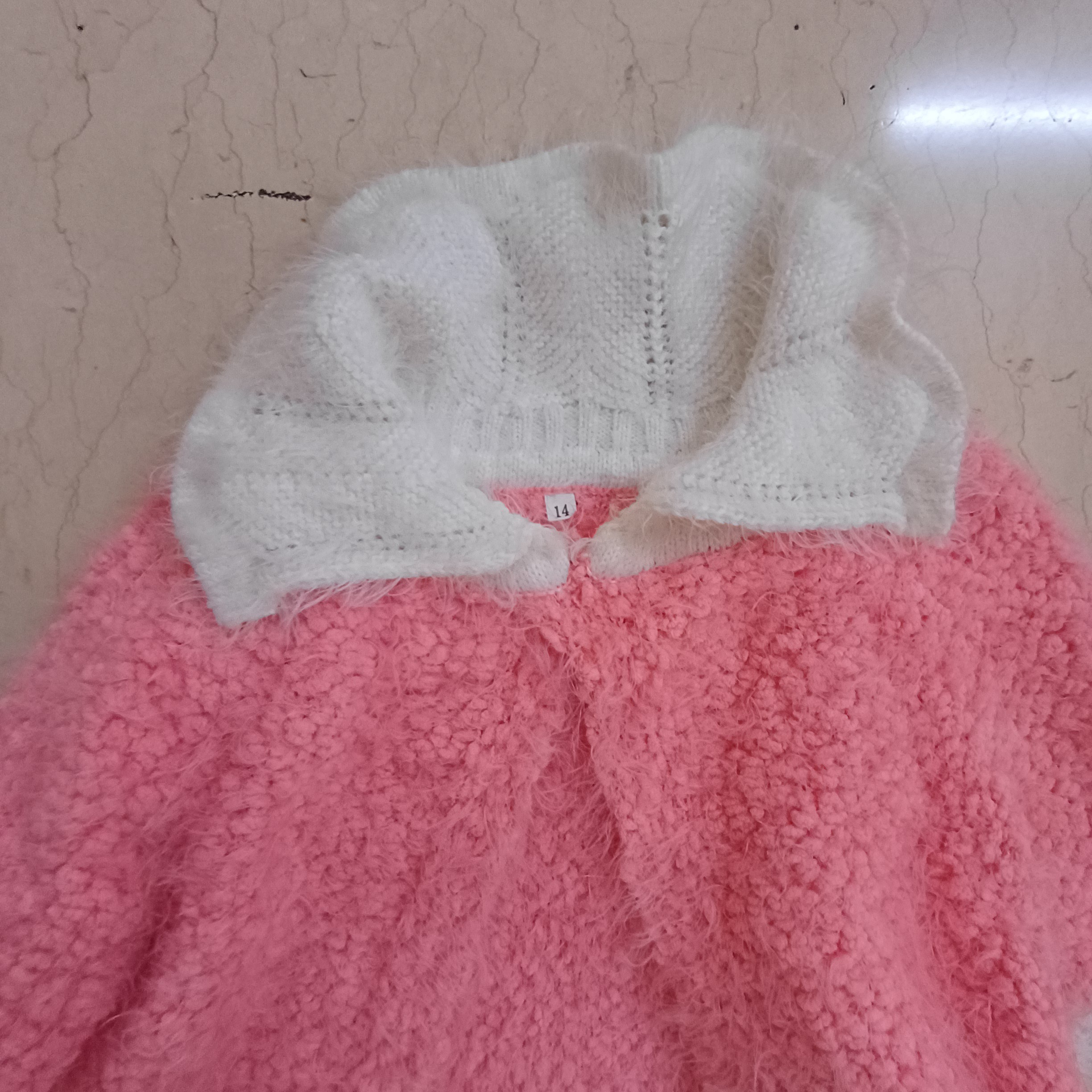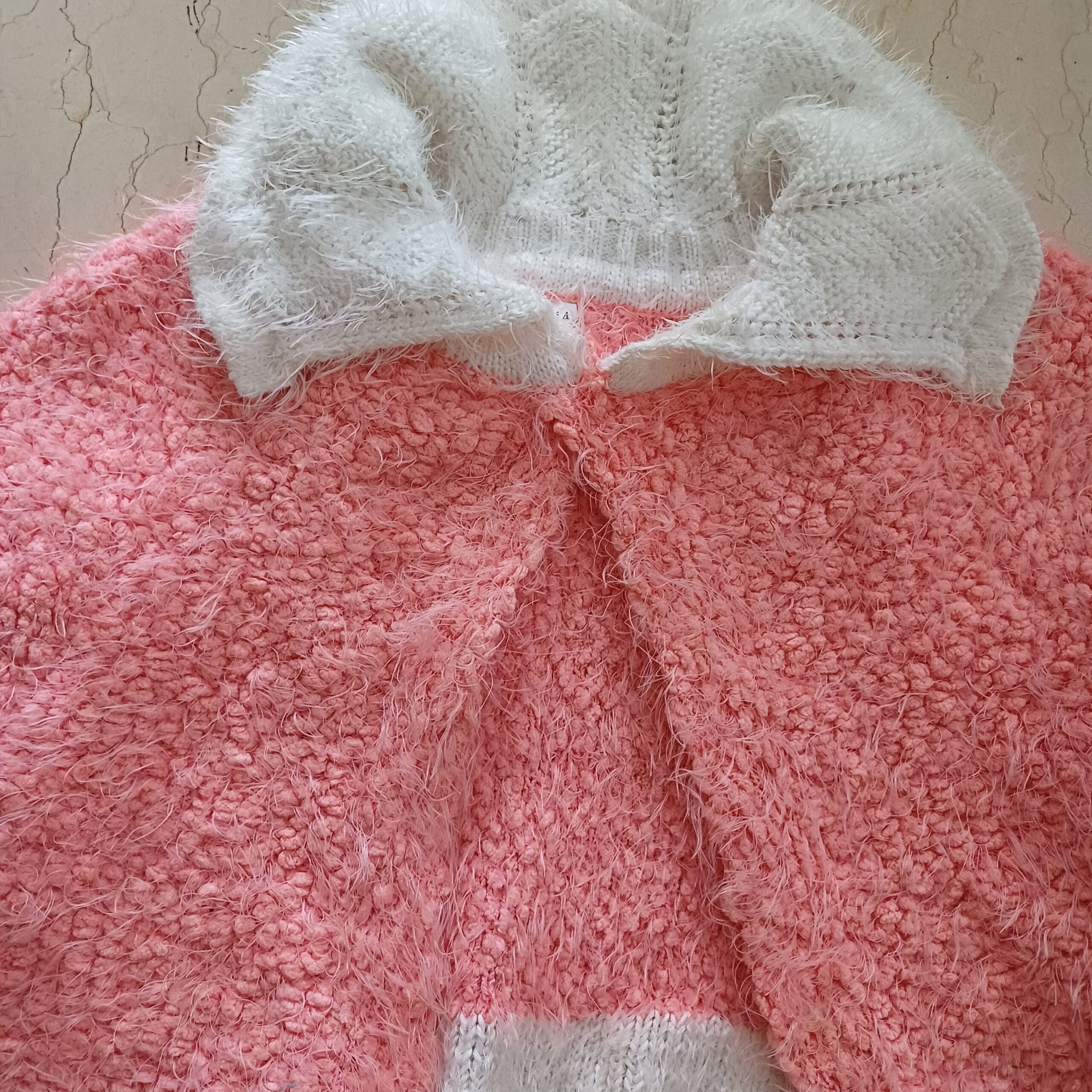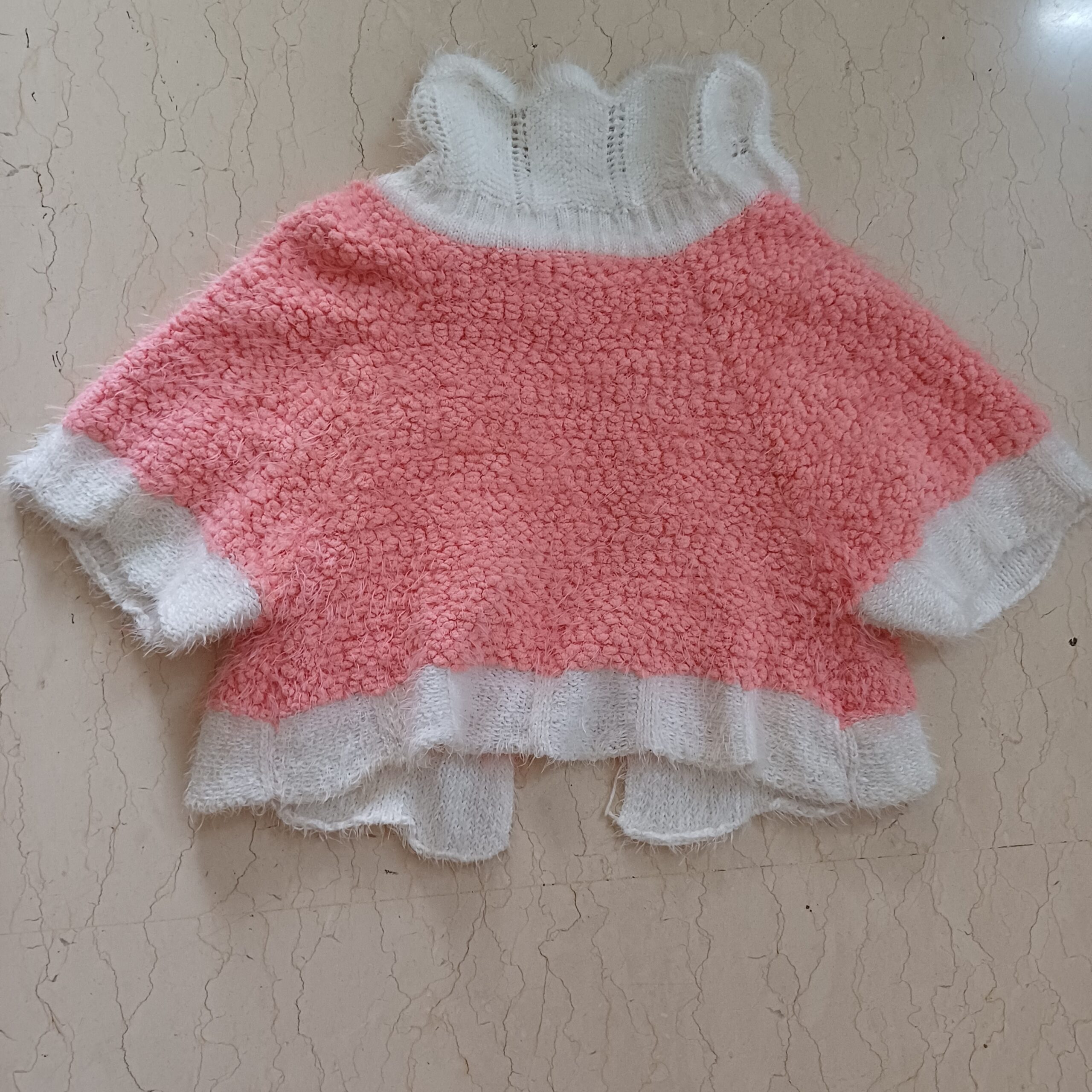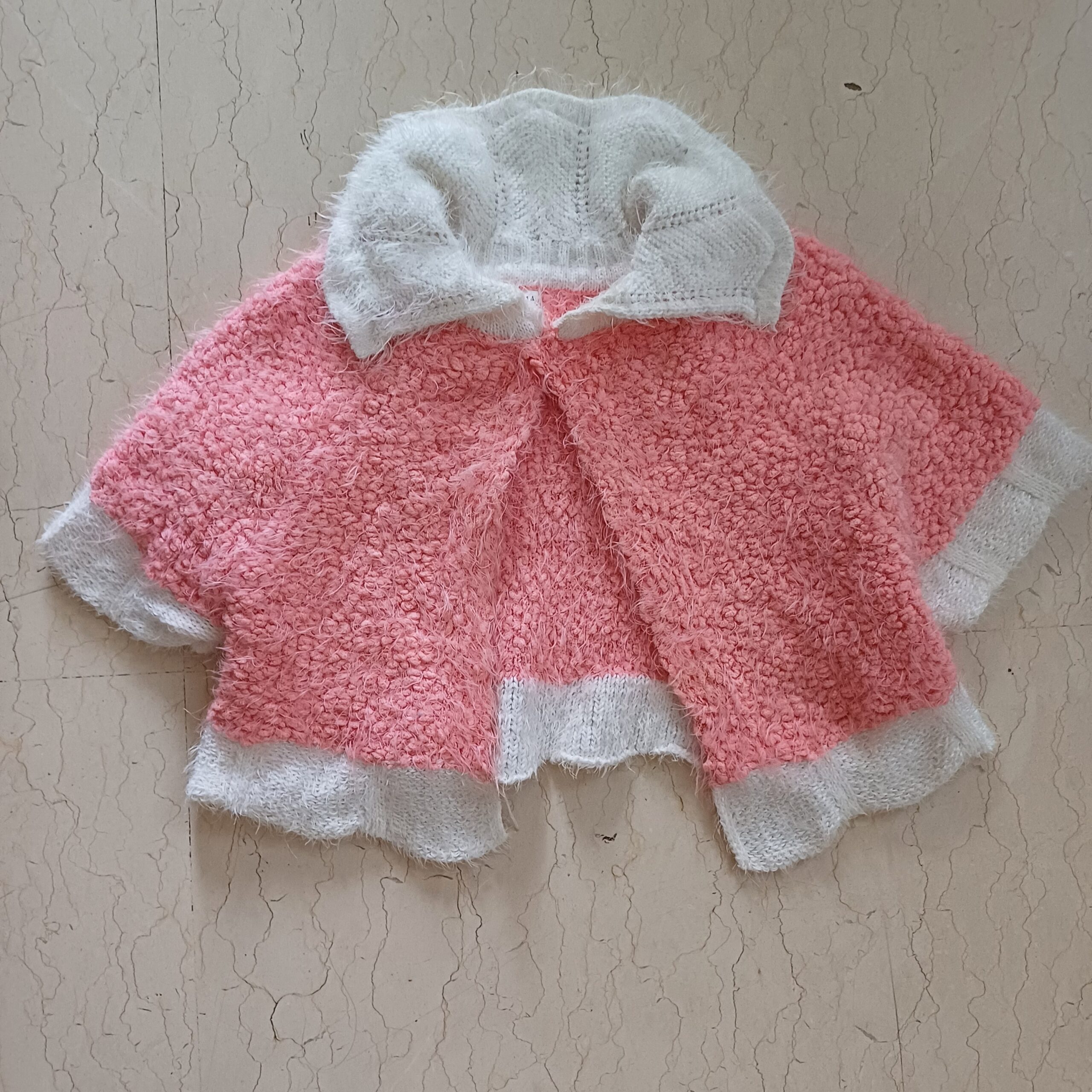 Product Description - Pure wool, soft coral and white colored woollen cape for girls. BRAND NEW and worn once or twice in parties over party dresses.