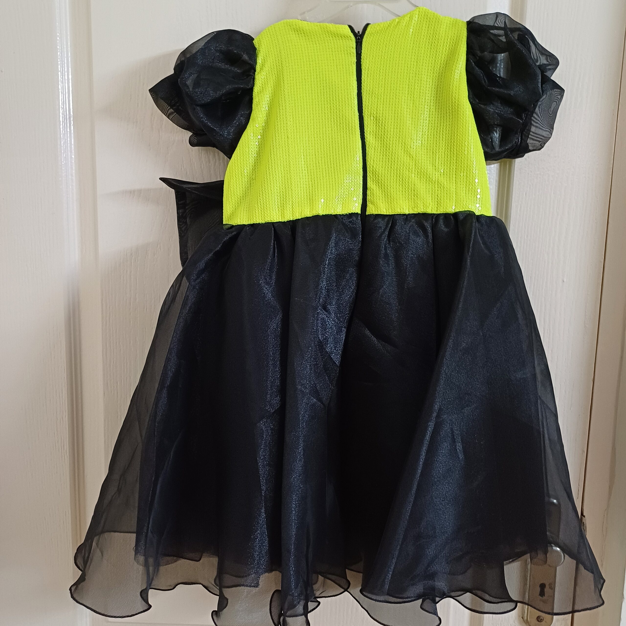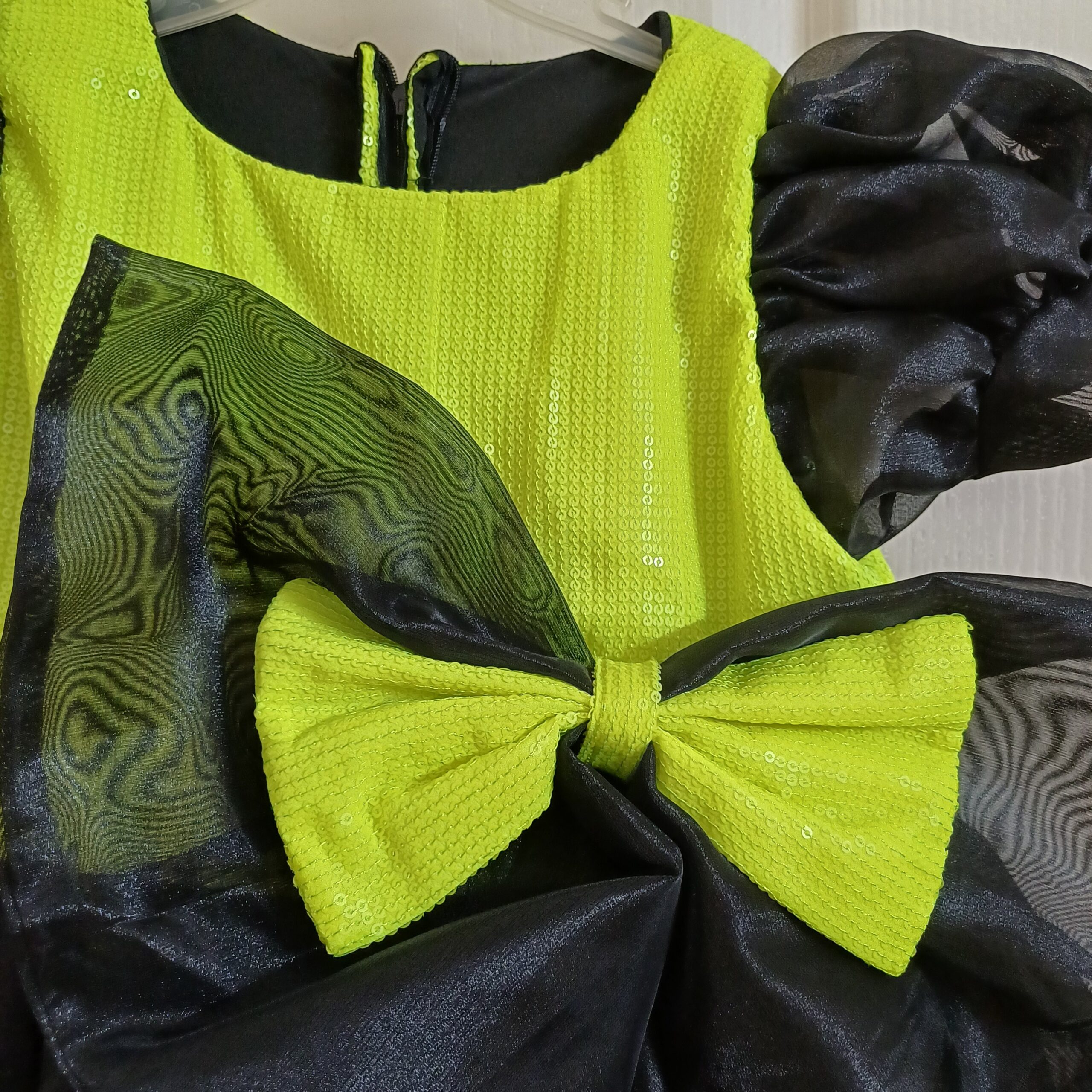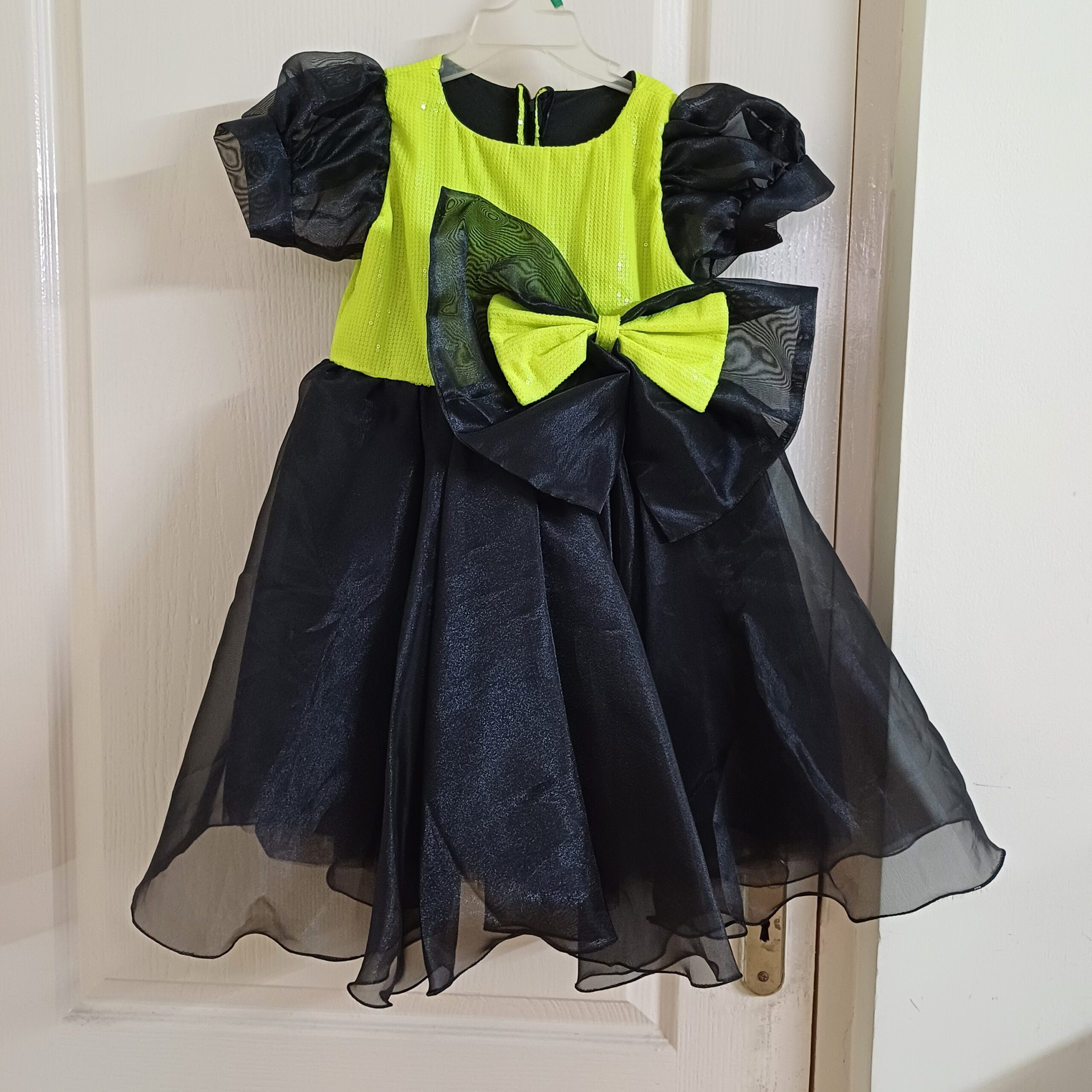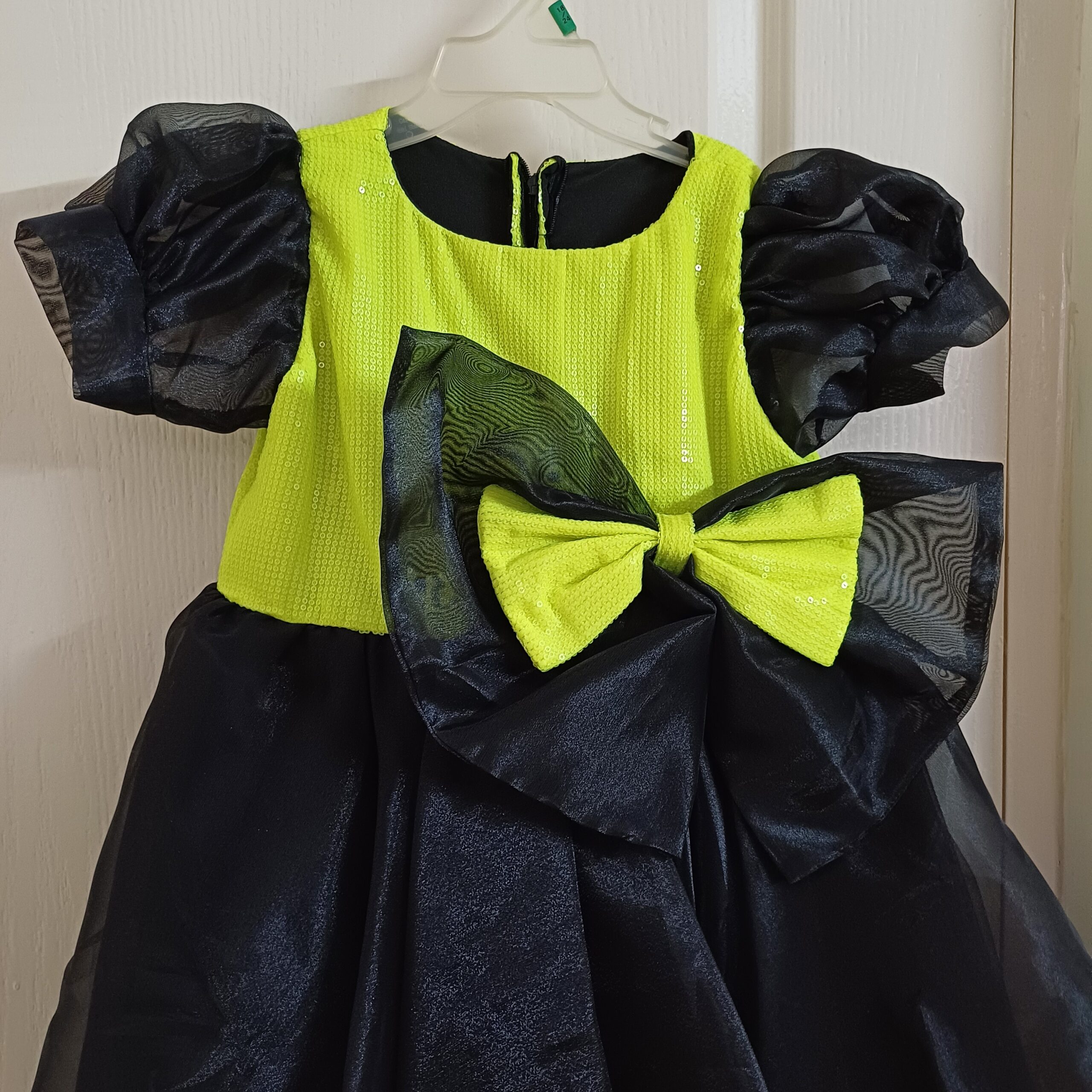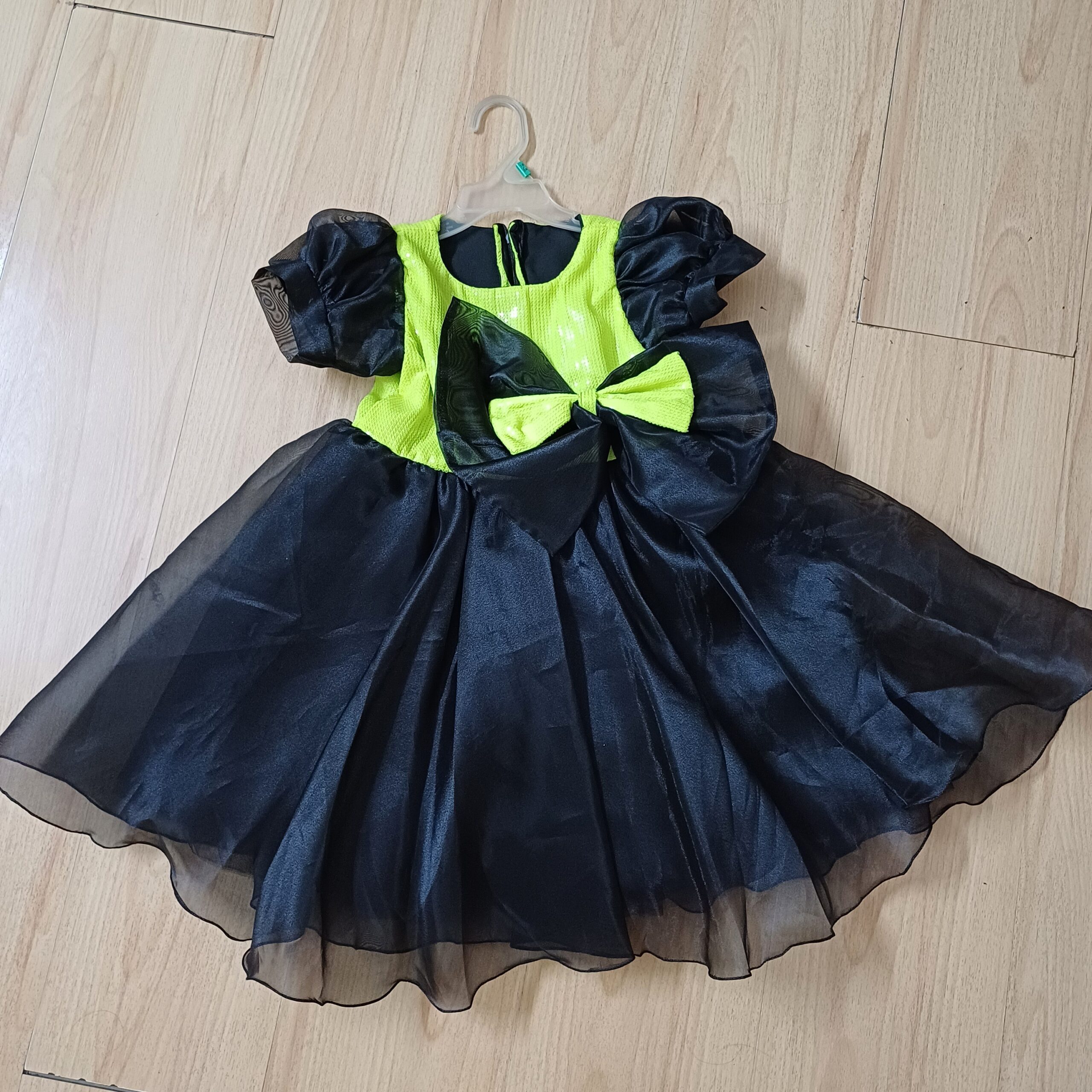 Product Description - It's a Couture Party Dress for Girls. Brand New, Worn for 15 min for ramp walk for the designer (my kid has done baby modelling). Never washed or used post that. It is brand new. The tag was pinned with a safety pin and has got lost in storage. Has beautiful fine sequins work on the yoke, a beautiful large sequins bow on waist. Lot of tulle for flair. Perfect for birthday parties. Giving at a steal.
