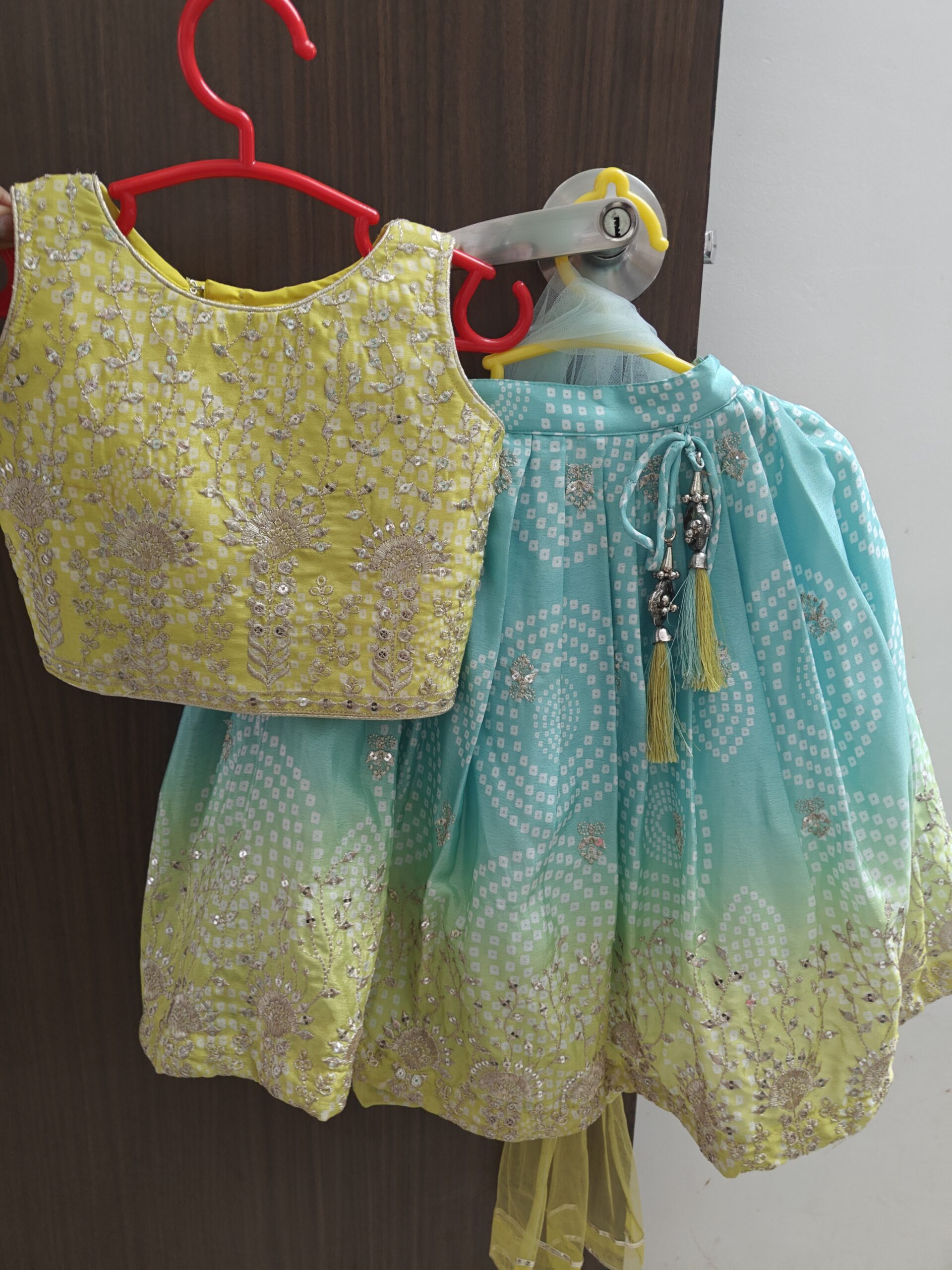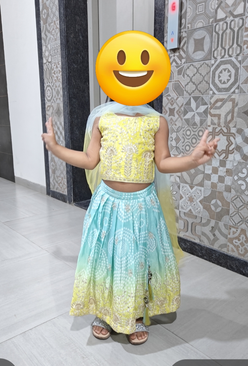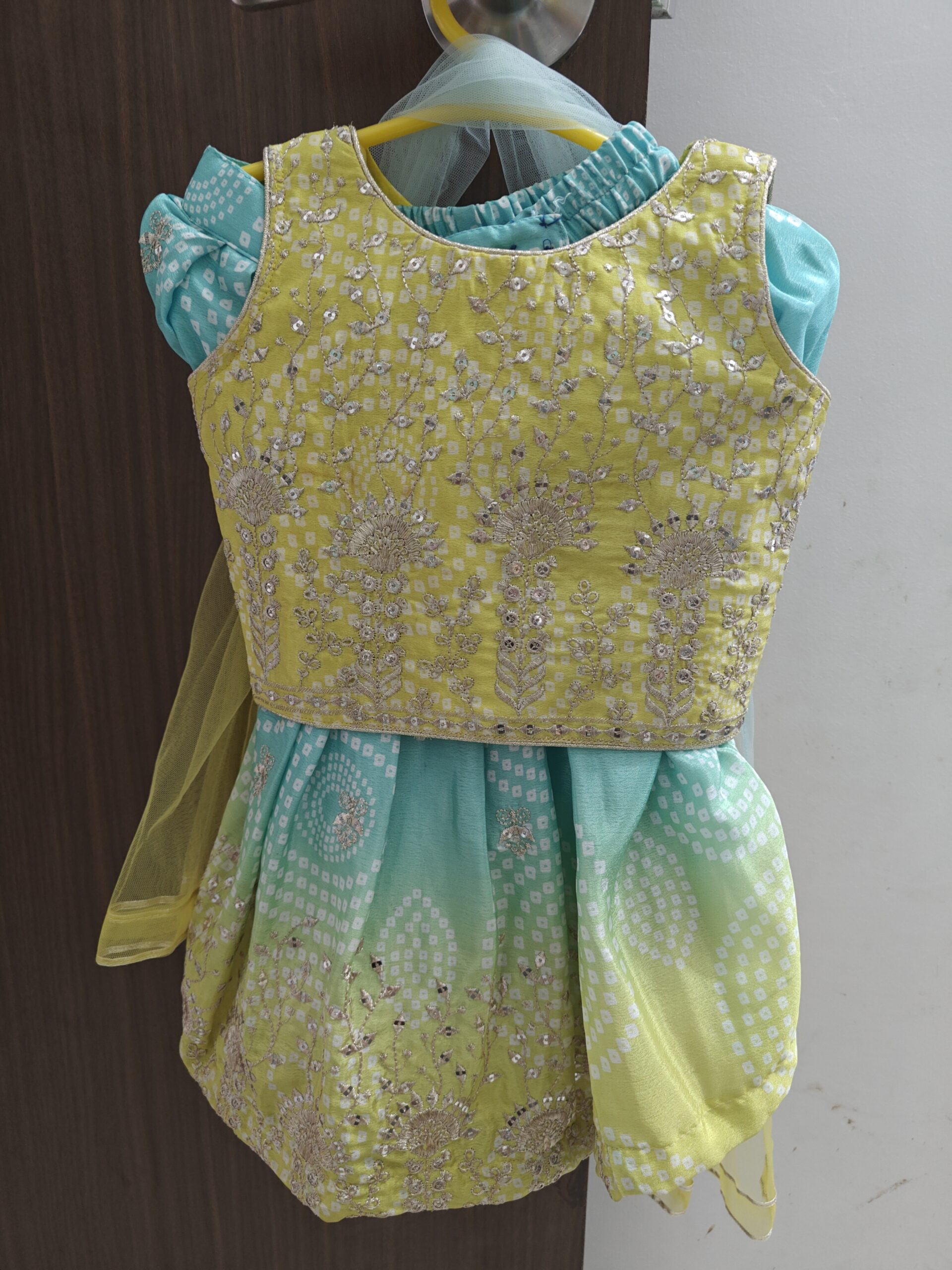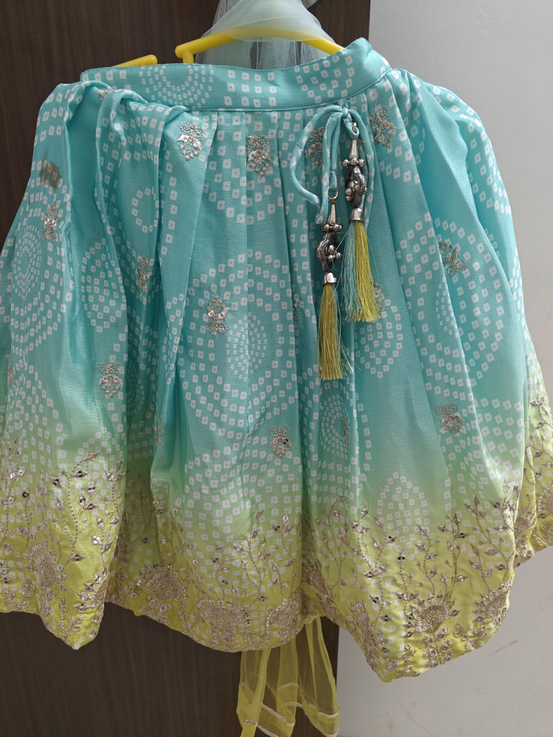 Preloved green blue bandhani print ghagra choli (2-4 years)
