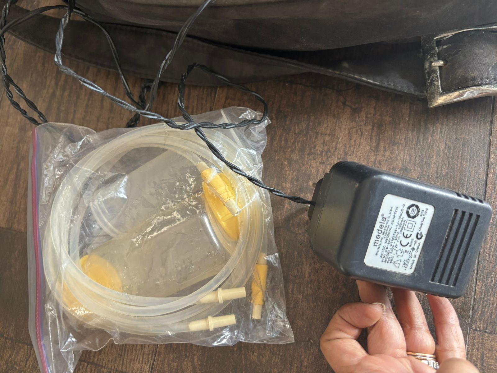 Information - Old bag and dusty - have to clean it, pump is working with plug. Old tubes bottles there but new bottles should be bought in market